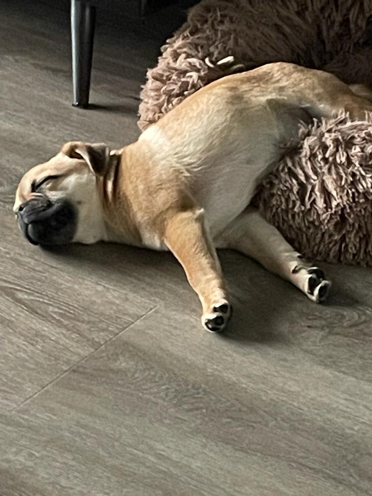 Hoi hoi. Ik ben Pien en geboren in September bij Chimos van Monica en Jan. Daar heb ik het al mee getroffen. Ze hebben goed opgelet dat ik als een gezond retromopshondje geboren ben. Ik mocht bij hun in de huiskamer spelen met mijn mama, broertjes , zusjes en de andere lieve hondjes die ook bij hun wonen. Monica en Jan zijn op zoek gegaan om voor mij een goed thuis te vinden. Niet iedereen vonden ze geschikt voor mij. Toen ik 12 weken was kwamen mijn huidige baasjes op bezoek. Ze wilden kennis maken met Monica, Jan en natuurlijk met mij. Ze werden meteen verliefd op mij. Ook Monica en Jan vonden hun een geschikt thuis. De eerste dagen was het wel wennen want alles was nieuw voor mij en ik misten de andere hondjes, Monica en Jan. Maar al snel was ik weer happy. Er werd me van alles geleerd en dat vind ik alleen maar leuk want ik ben erg leergierig. Bovendien wordt ik dan beloond met lekkere snoepjes en daar doe ik alles voor.
